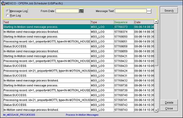 IM_MESSAGE_PROC: This job needs to run every hour to transfer the messages to inMotion. This is similar to an OXI service in that it actually transfers the data to inMotion. The logs also show if the service was able to process the data or if the service failed.